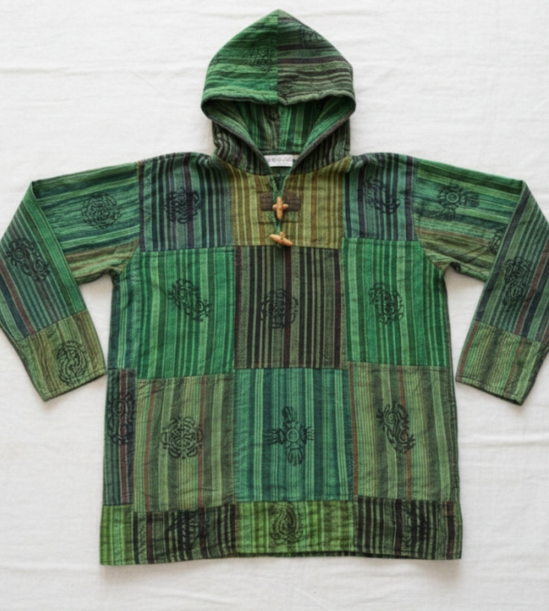 EARTHY GREEN ~ Cotton Patchwork Hoodie! XL