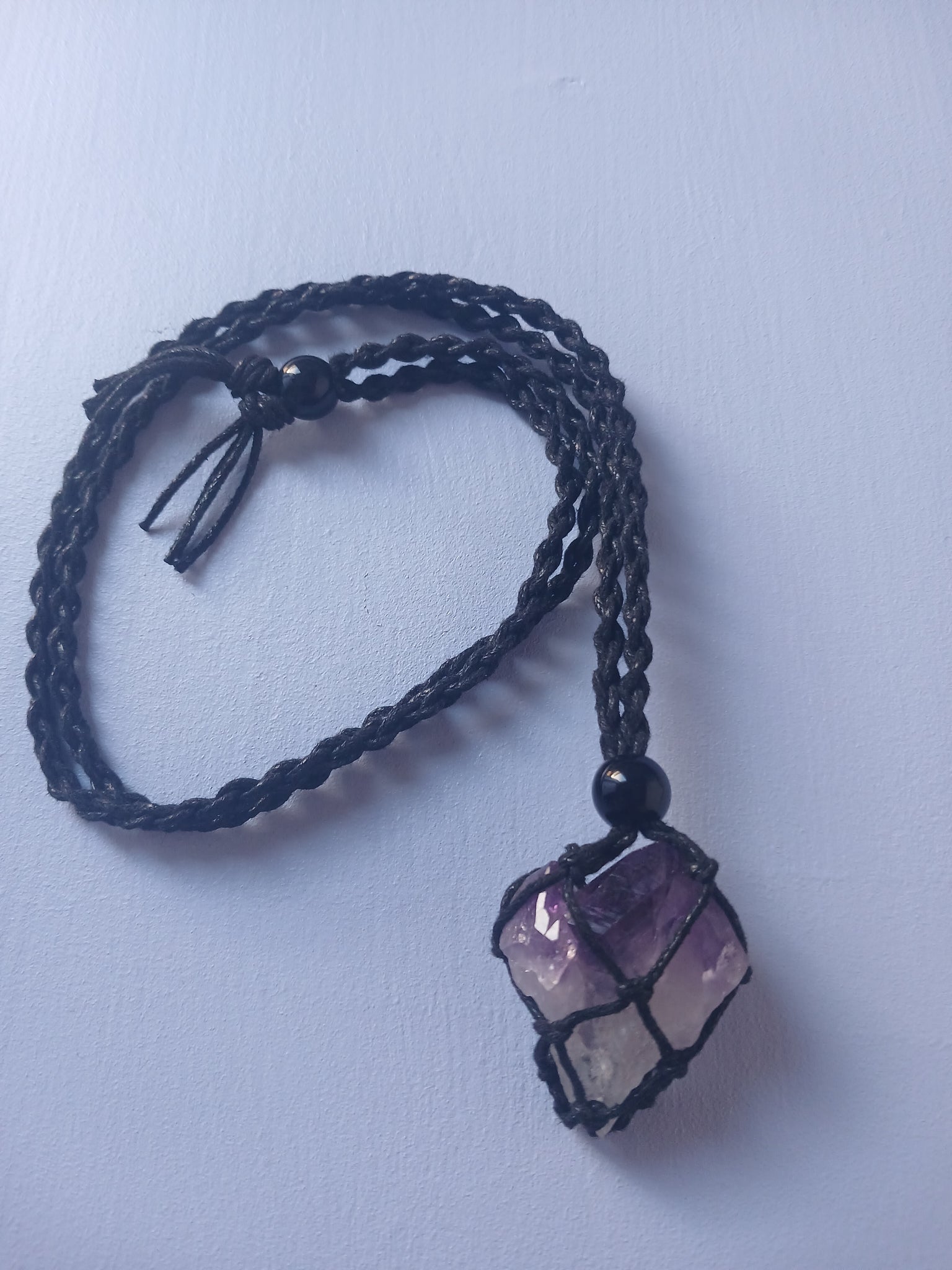 Find your calm in the chaos. Amethyst, the stone of peace and intuition, is beautifully showcased in this handcrafted macrame pendant. With its mesmerizing shades of royal purple and lavender, Amethyst has been prized for centuries as a natural stress reliever and a bridge to higher consciousness