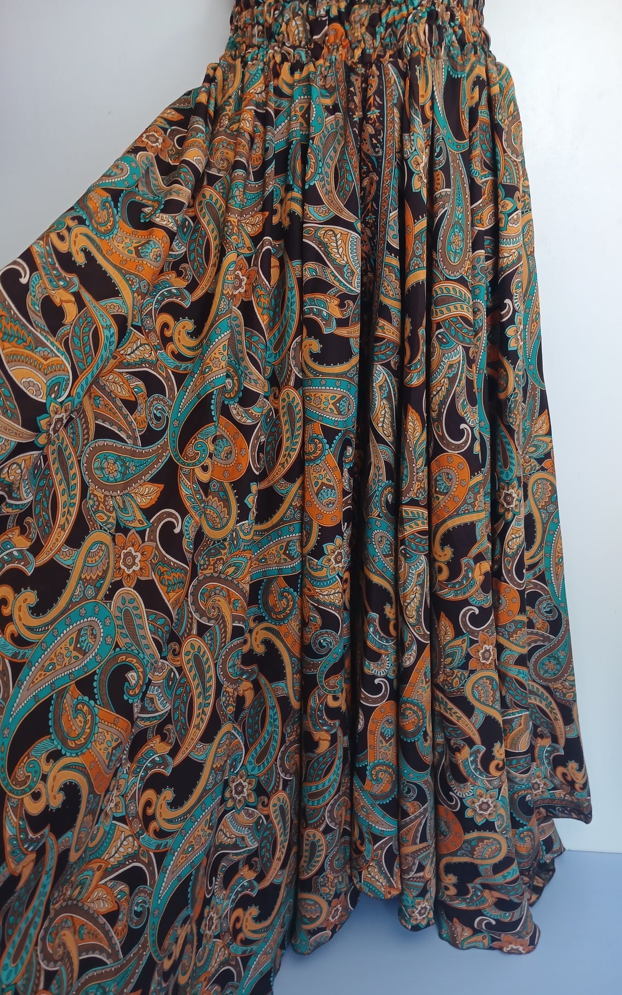 - Flowing Paisley Wide-Leg Pants: Perfect for festivals or lounging, these high-waisted, wide-leg pants feature an earthy paisley print and a comfortable elasticated waistband.