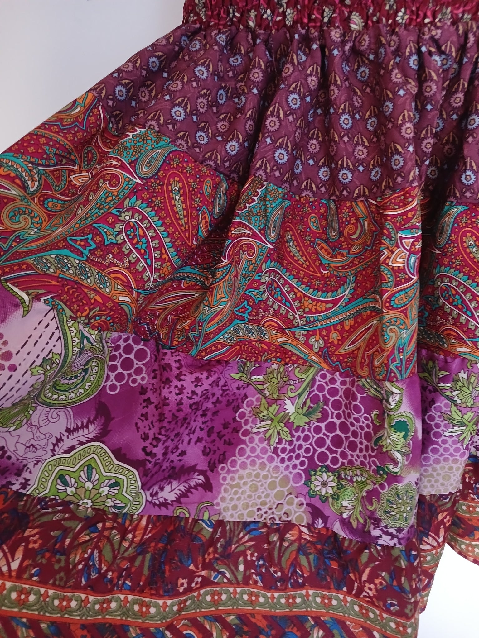 - Details: Vibrant multi-print tiers with a comfortable smocked stretch waist.